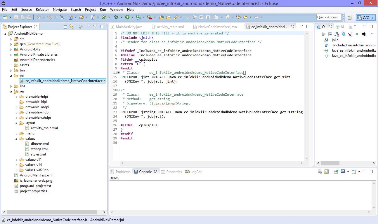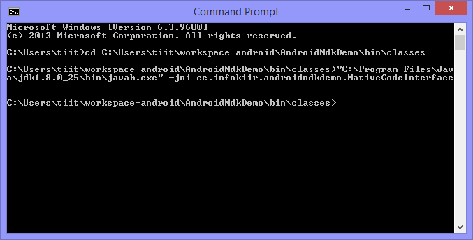 "C:\Program Files\Java\jdk1.8.0_25\bin\javah.exe" -jni ee.infokiir.androidndkdemo.NativeCodeInterface