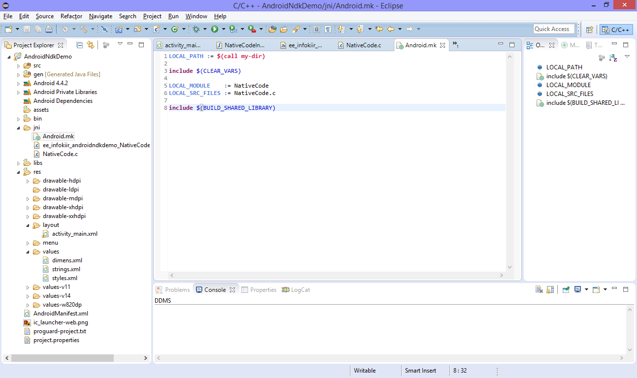 Eelmises osas valmistasime Eclipse projekti ette native koodi lisamiseks. Asume siis nüüd kõige põnevama juurde.