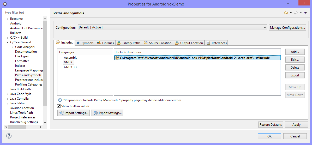 Lisa include teekond: C:\ProgramData\Microsoft\AndroidNDK\android-ndk-r10d\platforms\android-21\arch-arm\usr\include